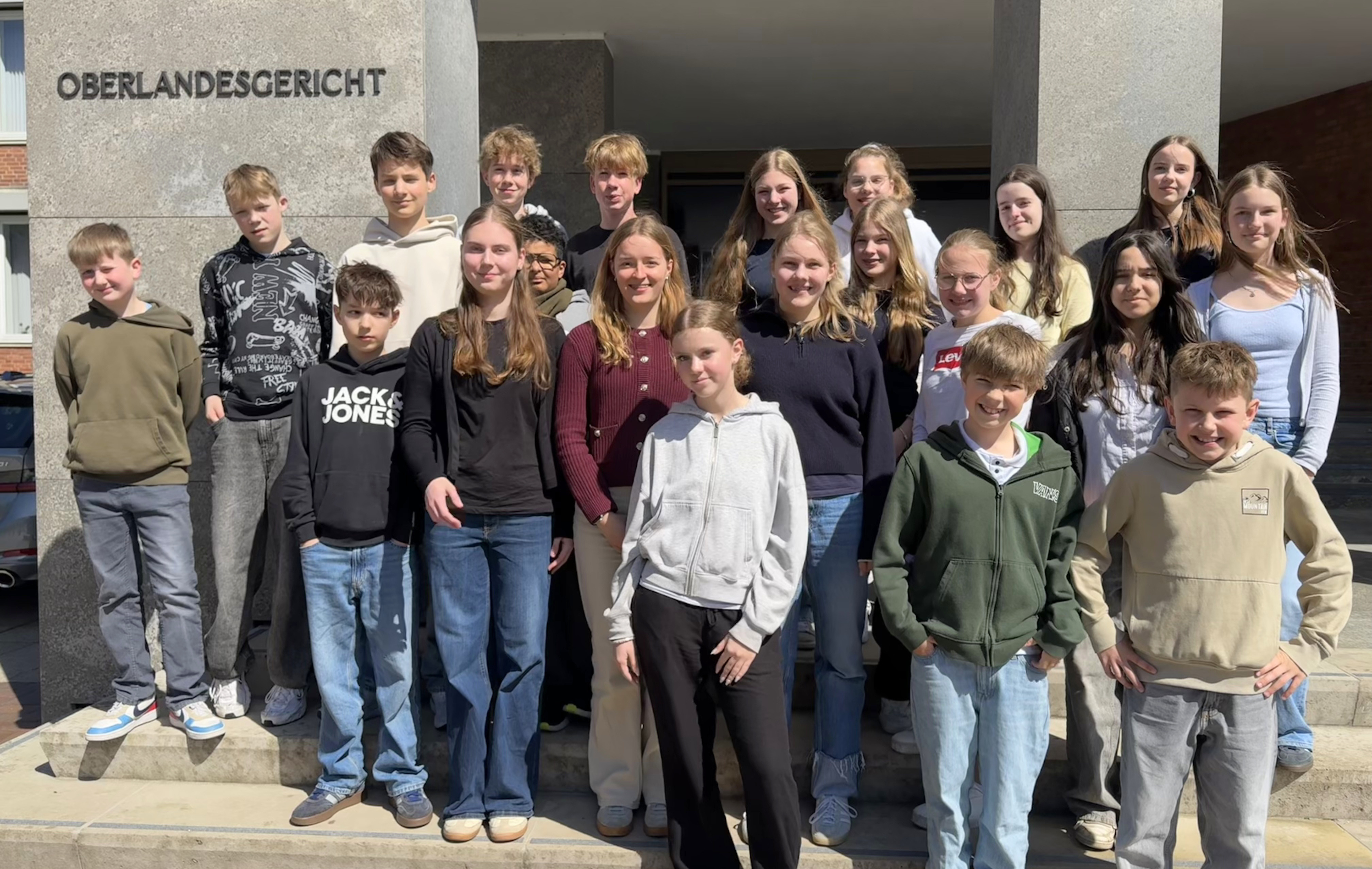 Im Anschluss durften die Schülerinnen und Schüler an einer echten Gerichtsverhandlung teilnehmen. In diesem Jahr war es besonders spannend, denn am Amtsgericht Oldenburg fand eine mündliche Verhandlung in einer Strafsache statt. Ein Praxiseindruck, der sicherlich besonders in Erinnerung bleiben wird. Die Richterin und der Vertreter der Staatsanwaltschaft nahmen sich auch viel Zeit, die vielen Fragen der Schülerinnen und Schüler zu beantworten.